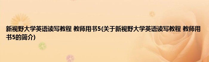 本文关于新视野大学英语读写教程 教师用书5的简介就讲解完毕,希望对大家有所帮助。