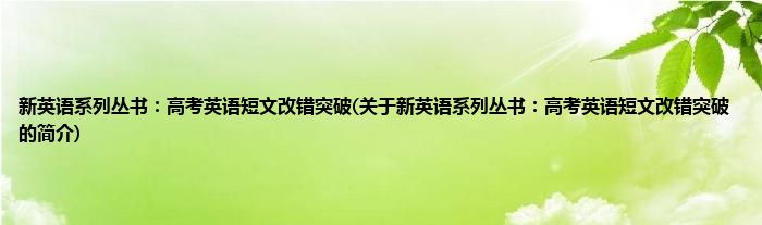 大家好,新英语系列丛书:高考英语短文改错突破,关于新英语系列丛书:高考英语短文改错突破的简介很多人还不知道,现在让我们一起来看看吧!