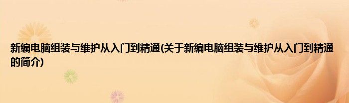 大家好,新编电脑组装与维护从入门到精通,关于新编电脑组装与维护从入门到精通的简介很多人还不知道,现在让我们一起来看看吧!