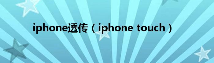 大家好,精选小编来为大家解答以上问题。iphone透传,iphone touch很多人还不知道,现在让我们一起来看看吧!