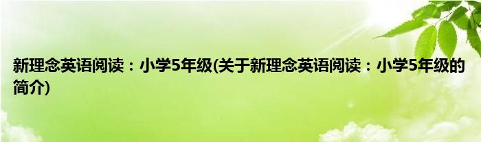 本文关于新理念英语阅读:小学5年级的简介就讲解完毕,希望对大家有所帮助。
