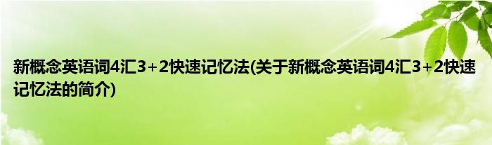 新概念英语词4汇3+2快速记忆法(关于新概念英语词4汇3+2快速记忆法的简介)