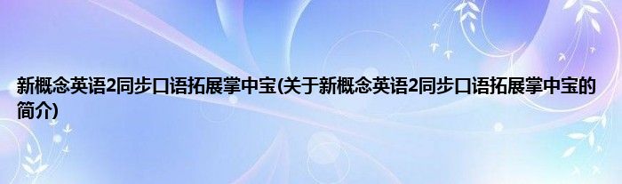本文关于新概念英语2同步口语拓展掌中宝的简介就讲解完毕,希望对大家有所帮助。