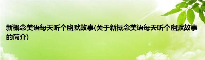 新概念美语每天听个幽默故事(关于新概念美语每天听个幽默故事的简介)