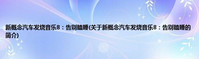 本文关于新概念汽车发烧音乐8:告别瞌睡的简介就讲解完毕,希望对大家有所帮助。