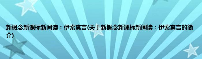 本文关于新概念新课标新阅读:伊索寓言的简介就讲解完毕,希望对大家有所帮助。