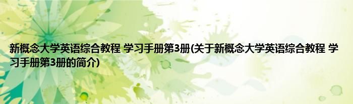 大家好,新概念大学英语综合教程 学习手册第3册,关于新概念大学英语综合教程 学习手册第3册的简介很多人还不知道,现在让我们一起来看看吧!