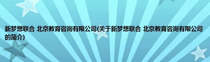 本文关于新梦想联合 北京教育咨询有限公司的简介就讲解完毕,希望对大家有所帮助。