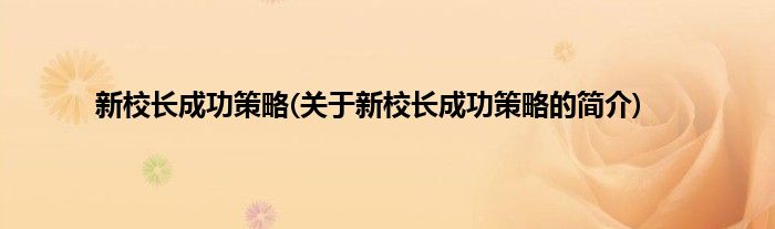 本文关于新校长成功策略的简介就讲解完毕,希望对大家有所帮助。