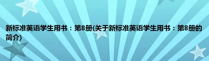 本文关于新标准英语学生用书:第8册的简介就讲解完毕,希望对大家有所帮助。