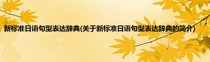 本文关于新标准日语句型表达辞典的简介就讲解完毕,希望对大家有所帮助。