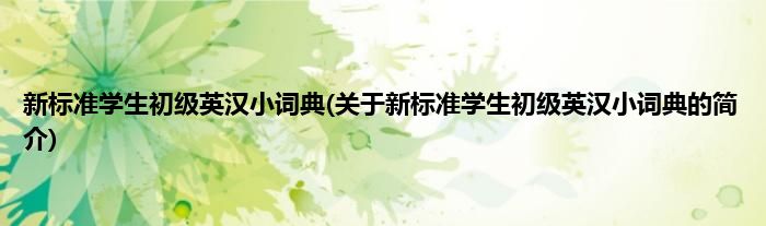 本文关于新标准学生初级英汉小词典的简介就讲解完毕,希望对大家有所帮助。