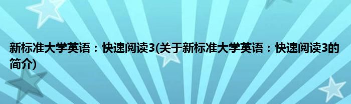 新标准大学英语:快速阅读3(关于新标准大学英语:快速阅读3的简介)