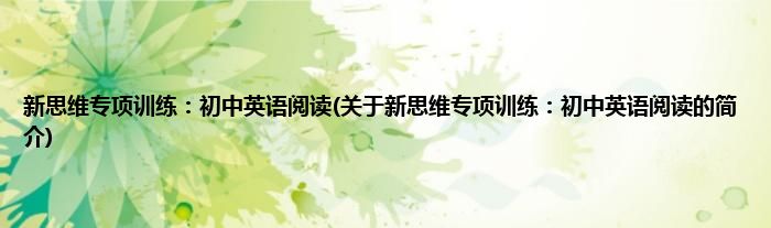 新思维专项训练:初中英语阅读(关于新思维专项训练:初中英语阅读的简介)