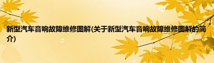 本文关于新型汽车音响故障维修图解的简介就讲解完毕,希望对大家有所帮助。
