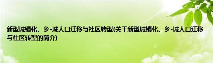 本文关于新型城镇化、乡-城人口迁移与社区转型的简介就讲解完毕,希望对大家有所帮助。