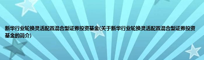 本文关于新华行业轮换灵活配置混合型证券投资基金的简介就讲解完毕,希望对大家有所帮助。