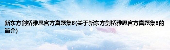 本文关于新东方剑桥雅思官方真题集8的简介就讲解完毕,希望对大家有所帮助。