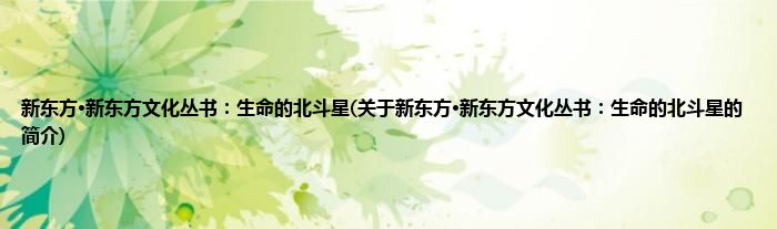 本文关于新东方·新东方文化丛书:生命的北斗星的简介就讲解完毕,希望对大家有所帮助。