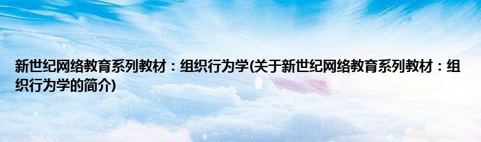 大家好,新世纪网络教育系列教材:组织行为学,关于新世纪网络教育系列教材:组织行为学的简介很多人还不知道,现在让我们一起来看看吧!