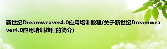 大家好,新世纪Dreamweaver4.0应用培训教程,关于新世纪Dreamweaver4.0应用培训教程的简介很多人还不知道,现在让我们一起来看看吧!