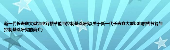 本文关于新一代长寿命大型铝电解槽节能与控制基础研究的简介就讲解完毕,希望对大家有所帮助。