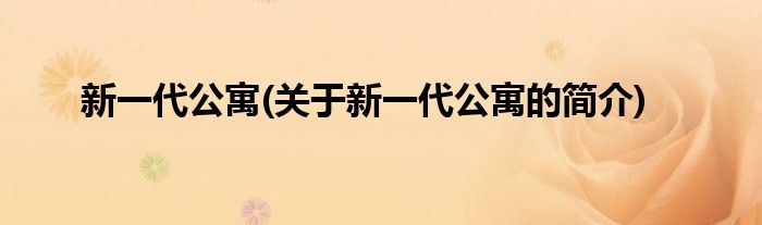 大家好,新一代公寓,关于新一代公寓的简介很多人还不知道,现在让我们一起来看看吧!