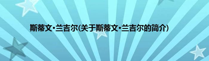 本文关于斯蒂文·兰吉尔的简介就讲解完毕,希望对大家有所帮助。