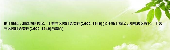 本文关于斯土斯民:湘赣边区移民、土著与区域社会变迁(1600-1949)的简介就讲解完毕,希望对大家有所帮助。