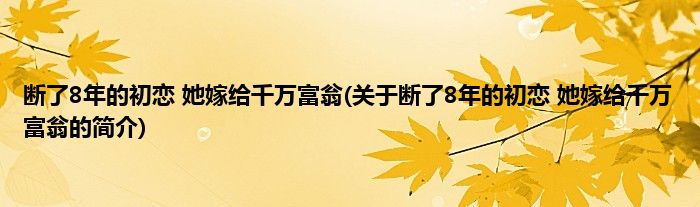 本文关于断了8年的初恋,她嫁给千万富翁的简介就讲解完毕,希望对大家有所帮助。