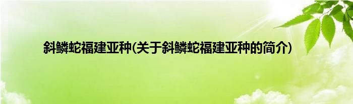 大家好,斜鳞蛇福建亚种,关于斜鳞蛇福建亚种的简介很多人还不知道,现在让我们一起来看看吧!