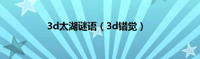 大家好,精选小编来为大家解答以上问题。3d太湖谜语,3d错觉很多人还不知道,现在让我们一起来看看吧!