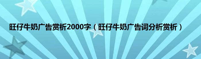 大家好,小科来为大家解答以上问题。旺仔牛奶广告赏析2000字,旺仔牛奶广告词分析赏析很多人还不知道,现在让我们一起来看看吧!