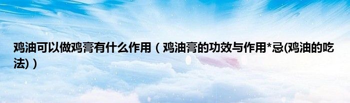 大家好,小科来为大家解答以上问题。鸡油可以做鸡膏有什么作用,鸡油膏的功效与作用*忌(鸡油的吃法)很多人还不知道,现在让我们一起来看看吧!