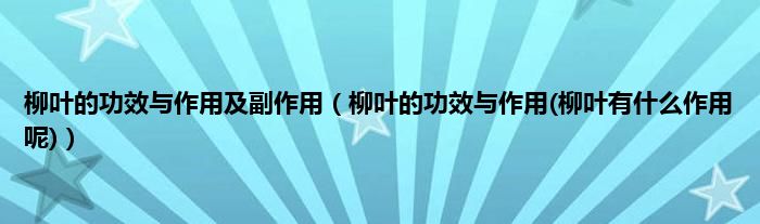 大家好,小科来为大家解答以上问题。柳叶的功效与作用及副作用,柳叶的功效与作用(柳叶有什么作用呢)很多人还不知道,现在让我们一起来看看吧!