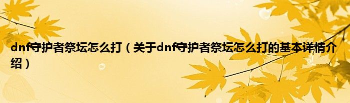 本文关于dnf守护者祭坛怎么打的基本详情介绍就讲解完毕,希望对大家有所帮助。
