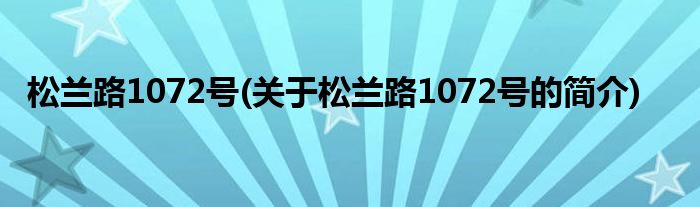 本文关于松兰路1072号的简介就讲解完毕,希望对大家有所帮助。