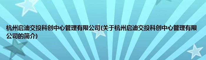 本文关于杭州启迪交投科创中心管理有限公司的简介就讲解完毕,希望对大家有所帮助。