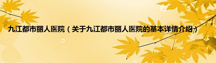 本文关于九江都市丽人医院的基本详情介绍就讲解完毕,希望对大家有所帮助。