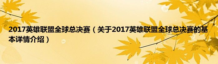 本文关于2017英雄联盟全球总决赛的基本详情介绍就讲解完毕,希望对大家有所帮助。