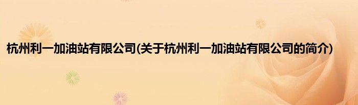 本文关于杭州利一加油站有限公司的简介就讲解完毕,希望对大家有所帮助。