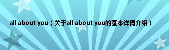 本文关于all about you的基本详情介绍就讲解完毕,希望对大家有所帮助。