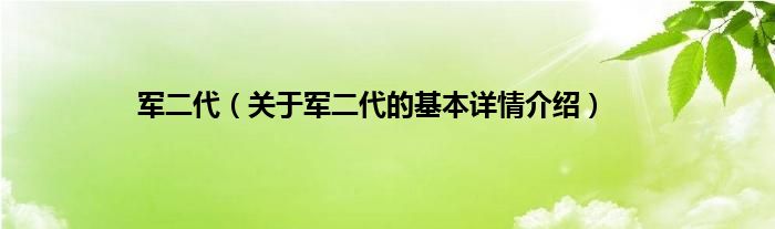 大家好我是小蝌蚪,军二代,关于军二代的基本详情介绍很多人还不知道,那么现在让我们一起来看看吧!
