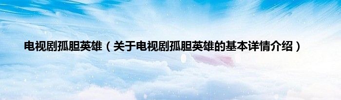 本文关于电视剧孤胆英雄的基本详情介绍就讲解完毕,希望对大家有所帮助。