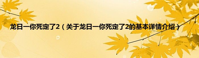 本文关于龙日一你死定了2的基本详情介绍就讲解完毕,希望对大家有所帮助。