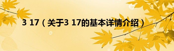 本文关于3 17的基本详情介绍就讲解完毕,希望对大家有所帮助。
