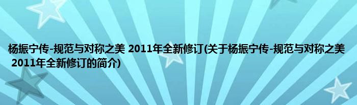 本文关于杨振宁传-规范与对称之美 2011年全新修订的简介就讲解完毕,希望对大家有所帮助。