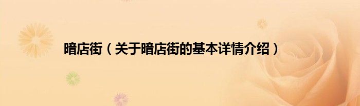 本文关于暗店街的基本详情介绍就讲解完毕,希望对大家有所帮助。