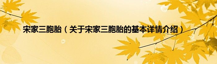 大家好我是小蝌蚪,宋家三胞胎,关于宋家三胞胎的基本详情介绍很多人还不知道,那么现在让我们一起来看看吧!