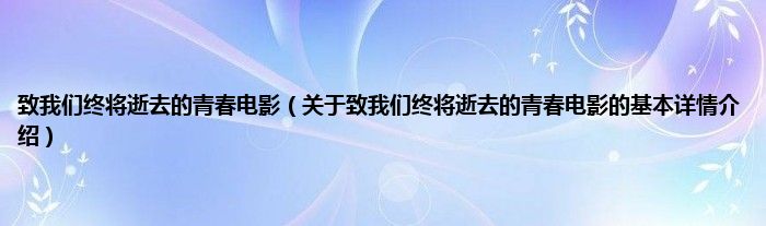 本文关于致我们终将逝去的青春电影的基本详情介绍就讲解完毕,希望对大家有所帮助。